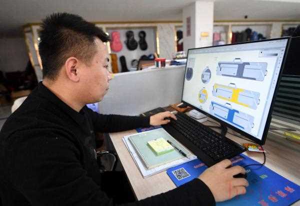 ↑12月11日,工作人員在白溝和道國(guó)際箱包城工業(yè)設(shè)計(jì)中心設(shè)計(jì)新款箱包。