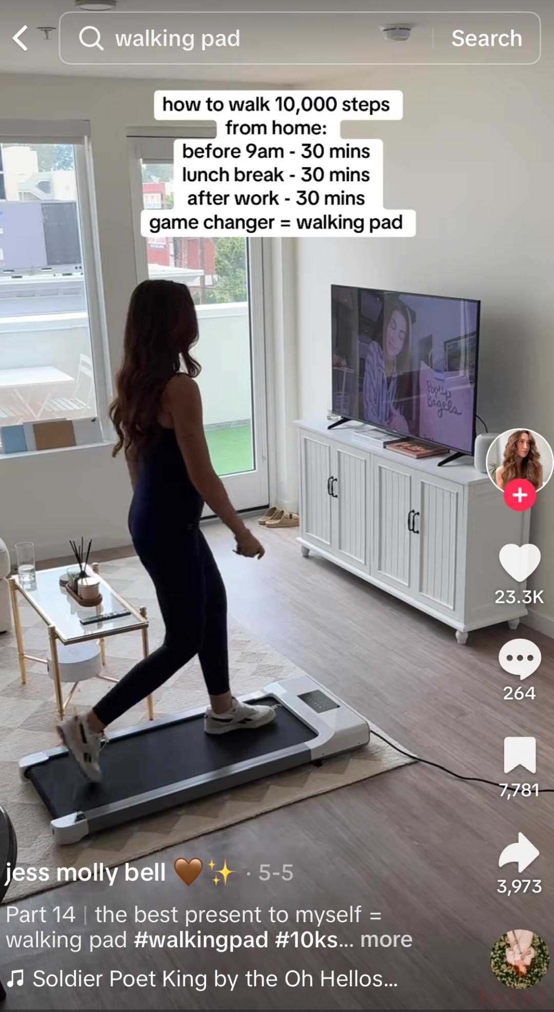 于是秉持著“將健身融入生活工作每分每秒”的健身網(wǎng)紅們挖掘出了新的居家健身神器,走步機(jī)。