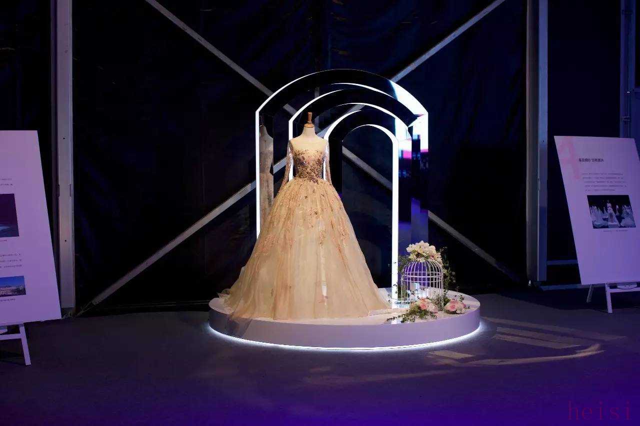 新天地太平湖秀場(chǎng)大廳靜立著幾套LANYU的禮服,讓那股安寧?kù)o雅的浪漫情懷飄蕩在整個(gè)大廳。整個(gè)秀場(chǎng)也被LANYU宛若黑色蕾絲織就得圓環(huán)標(biāo)志所包圍,蕾絲中印刻著LANYU的品牌名。秀前點(diǎn)心、餐巾紙、函上都點(diǎn)綴著這樣復(fù)古典雅的黑色蕾絲,讓前來(lái)觀秀的嘉賓未開(kāi)秀就感受到那般柔美浪漫的女性情懷。