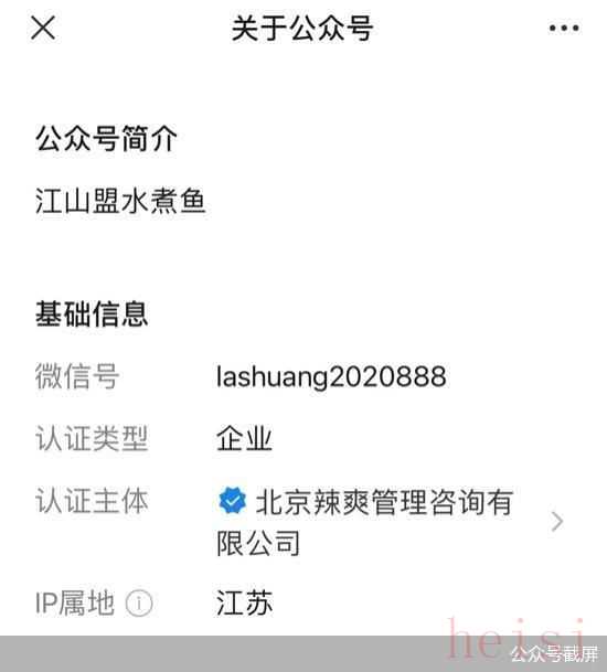 北京商報記者從江山盟·品質川菜的公眾號上看到,其認證主體為北京辣爽管理咨詢有限公司(以下簡稱“北京辣爽”)。天眼查顯示,北京辣爽公司法定代表人是李德坤,李德坤正是一點嗨公司法定代表人。