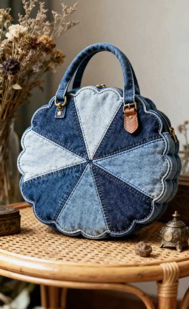 而一個手工牛仔包,原料來自你家衣柜深處那條穿了五年的褲子,制作過程可能花了你三個晚上,邊做邊看劇,針腳歪了就笑一笑,最后背上街,別人問“這包哪買的?