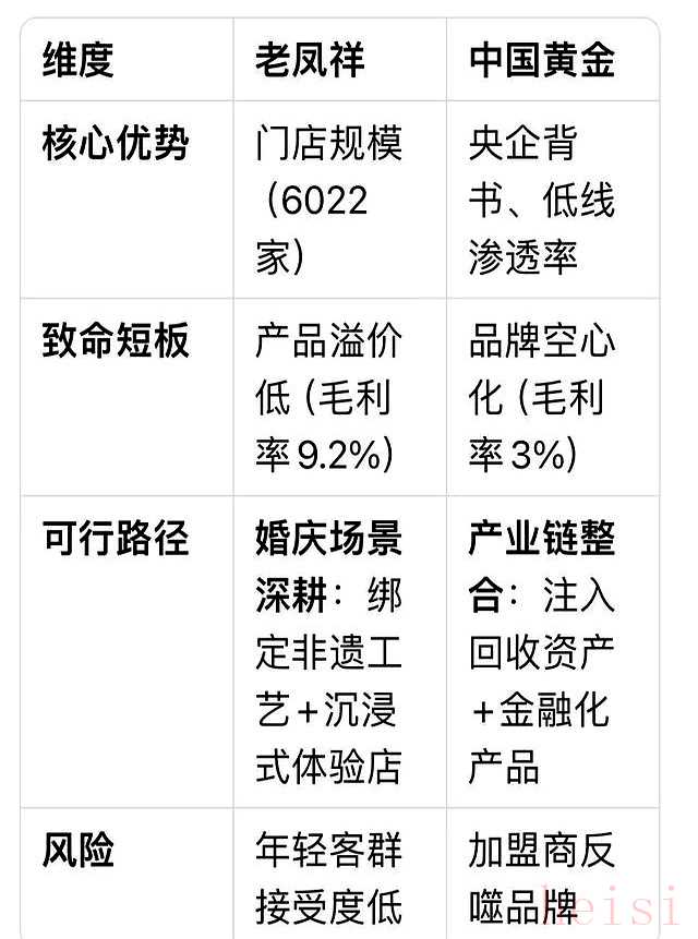 "渠道優(yōu)勢:" 老鳳祥的門店網(wǎng)絡(luò)遍布全國,尤其是在二三線及以下城市,覆蓋面遠(yuǎn)超周大福和中金。這種廣泛的線下渠道是其在傳統(tǒng)市場的重要護(hù)城河。