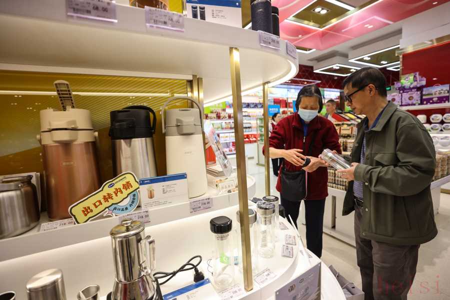 在南京路步行街上的第一食品商店,剛裝修好的“思樂得”專柜上擺著近30種產(chǎn)品,都是出口轉(zhuǎn)內(nèi)銷的外貿(mào)商品。能夠耐受極高溫和極低溫的玻璃墩墩杯、精工制造的保溫杯、高品質(zhì)的燜燒罐等都受到了顧客們的青睞。