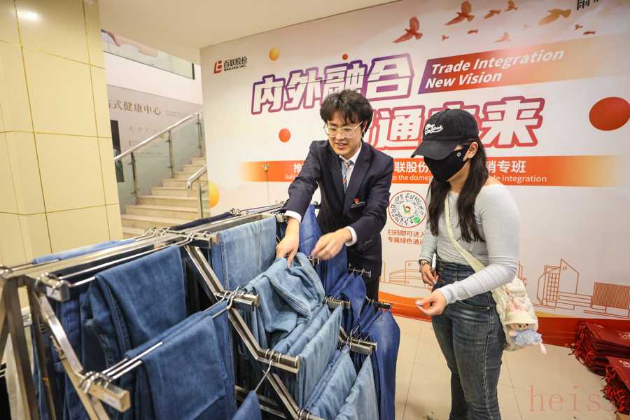 在永安百貨三樓服裝區(qū)里,一個新亮相的牛仔品牌吸引了不少顧客。品牌屬于東莞的一家外貿(mào)企業(yè),八成商品出口美國。在關(guān)稅政策影響下,幾十萬件貨品積壓在倉庫。近日,他們聯(lián)系上百聯(lián)股份,僅用了一周左右時間,就完成了從接洽到簽約再上柜的流程。記者在現(xiàn)場采訪時,商場負(fù)責(zé)人介紹,截至下午4點半前,當(dāng)天已售出近60條牛仔褲,隨著夏季的到來,幾款面料較薄的款式銷量很高,成為了爆款。