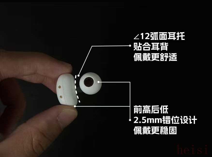 我先說說它的佩戴感,這款的設(shè)計(jì)還挺貼心的,2.5mm 錯(cuò)位設(shè)計(jì)讓耳機(jī)夾在耳朵上不會(huì)有明顯的壓迫感,戴久了也舒服;而且耳背能靠電池倉(cāng)帶的 12°弧面耳托也有不錯(cuò)的穩(wěn)定性。單只才4.5g,我有時(shí)候戴一下午寫東西,耳朵既不悶也不疼,這點(diǎn)特別加分。
