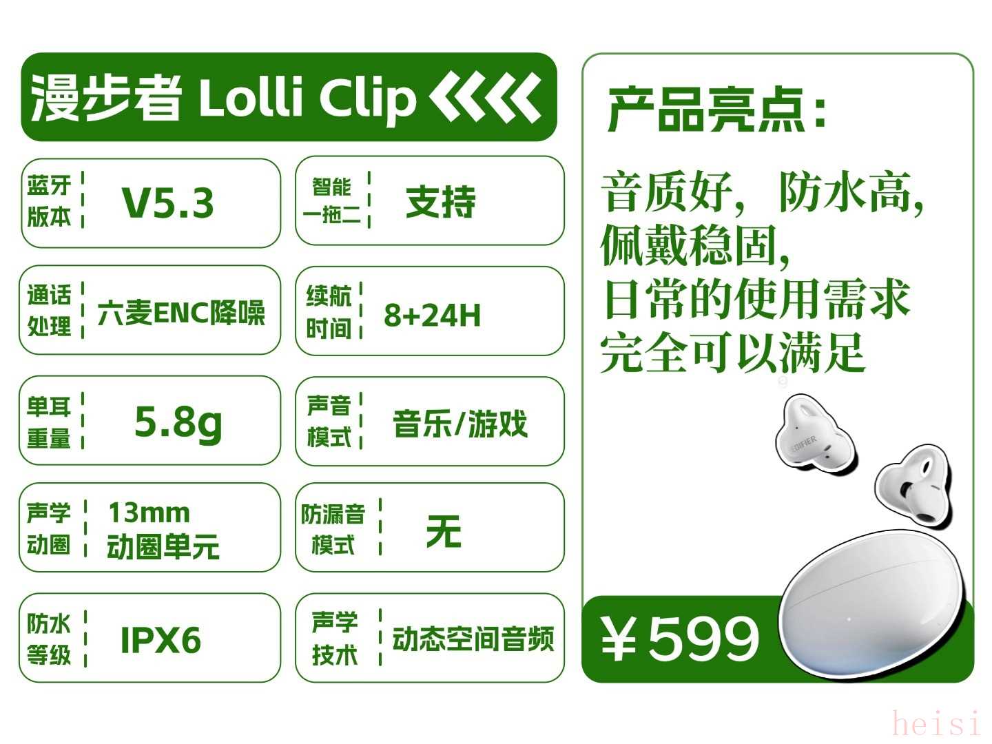 佩戴上,這款單只 5.7 克,重量適中,長(zhǎng)時(shí)間戴也不會(huì)讓耳朵酸脹,舒適度很好。耳機(jī)夾耳部分是固定的人體工學(xué)結(jié)構(gòu),能剛好貼合耳骨邊緣,不壓耳朵,而且戴得很穩(wěn),就算走路或者輕微運(yùn)動(dòng),也不易掉落,不用總擔(dān)心耳機(jī)掉了。