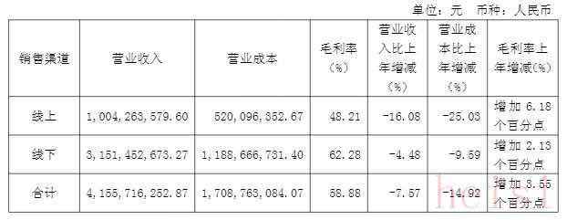 線上渠道和線下渠道毛利率的差距達(dá)到了14.07個(gè)百分點(diǎn)。