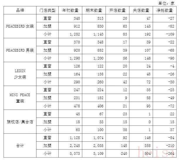 隨著公司整體的戰(zhàn)略轉(zhuǎn)型,太平鳥在渠道策略上重點(diǎn)轉(zhuǎn)向提升終端品牌形象和門店坪效,具體表現(xiàn)為開設(shè)千平大店,同時(shí)部分加盟店退出市場(chǎng)。