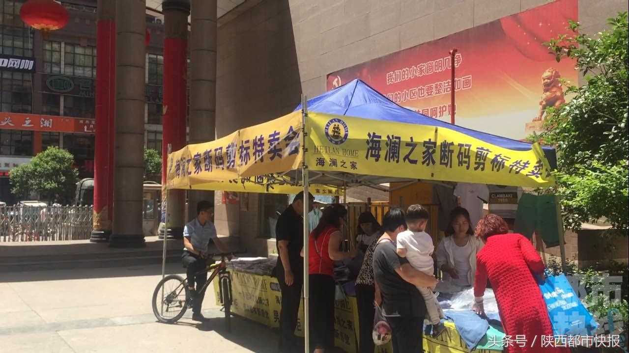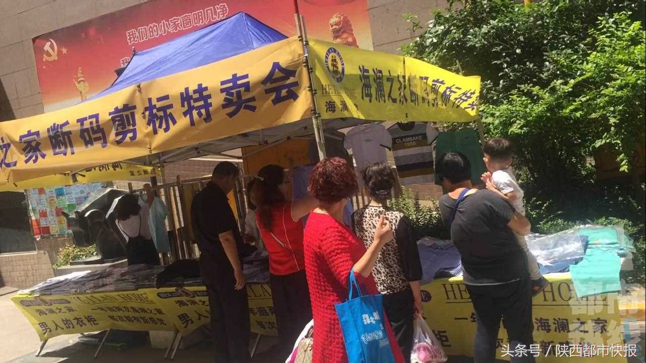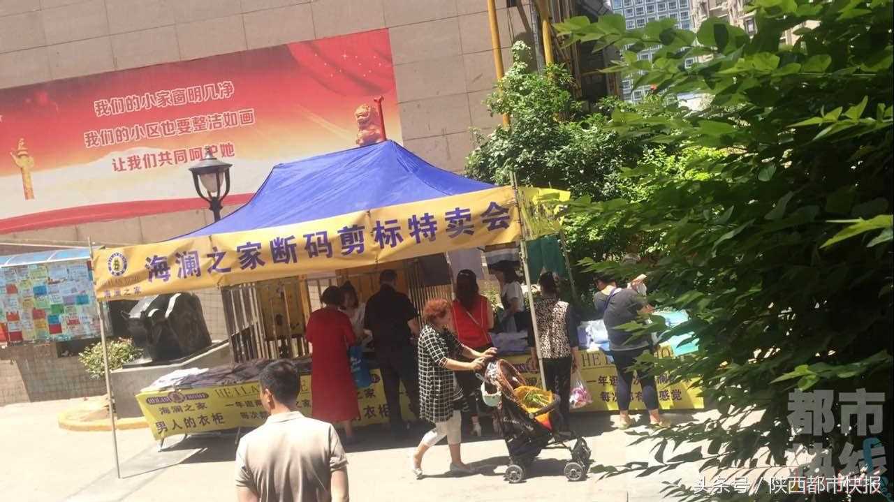 剛走進西安市碑林區(qū)西荷花園小區(qū)大門,映入眼簾的就是一個賣衣服的攤點,攤點的宣傳語上清晰的寫著海瀾之家斷碼剪標特賣會,聽說是品牌男裝,小區(qū)不少居民都圍了過來。