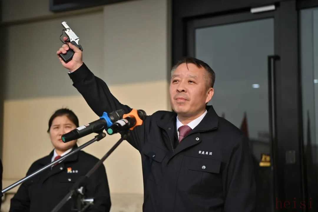 圖為集團黨委書記、董事長劉偉在拔河比賽開幕式上鳴發(fā)令槍并宣布比賽開始。