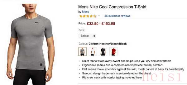 當前,耐克官方網(wǎng)站已經(jīng)沒有以“Cool Compression”為名稱的產(chǎn)品。但在亞馬遜等第三方電商平臺,這一表述依然存在。