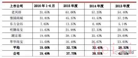 不過(guò),跟同業(yè)上市公司相比,周大生毛利率并不算高。