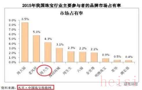 具體來(lái)看,中國(guó)珠寶行業(yè)老大是周大福,老鳳祥第二,自己是老三,周生生第四。境內(nèi)珠寶首飾市場(chǎng)品牌占有率前三名市場(chǎng)份額為18.60%。