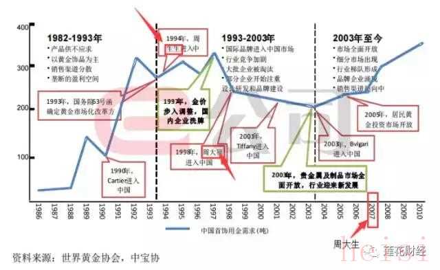 按照進(jìn)入國(guó)內(nèi)市場(chǎng)時(shí)間,周生生比周大福早來(lái)4年。經(jīng)歷黃金珠寶市場(chǎng)三屆廝殺,周大生才“出生”。