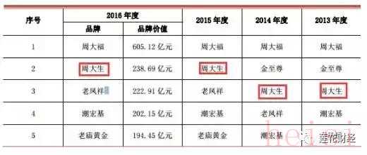 按照品牌價(jià)值,于中高端主流市場(chǎng)的周大生,去年直接甩掉老鳳祥,僅次于周大福,干到第二。