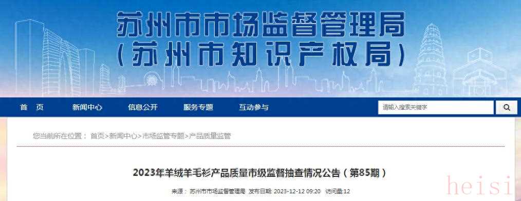 1. "蘇州市市場(chǎng)監(jiān)督管理局官網(wǎng):" 搜索“蘇州市2023年羊絨羊毛衫產(chǎn)品質(zhì)量市級(jí)監(jiān)督抽查情況公告(第85期)”或訪問(wèn)官網(wǎng)查看公告信息。