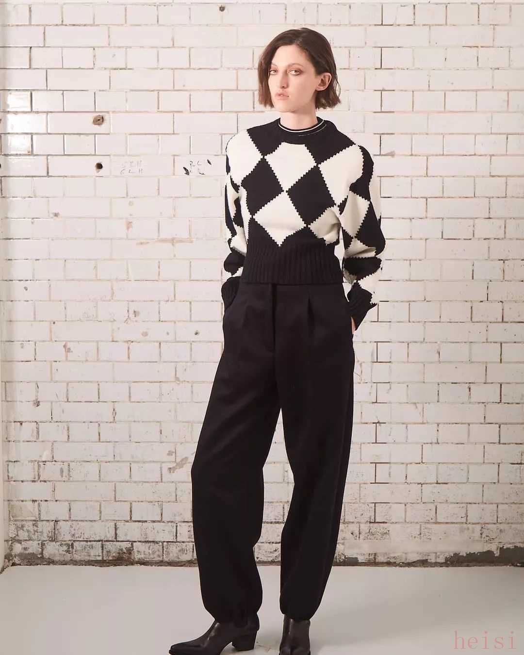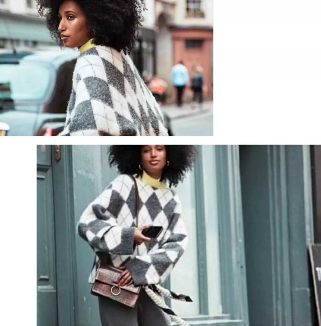 所以選他家的羊絨衫菱形花紋類絕對(duì)是你的首選,當(dāng)你脫下臃腫的外套時(shí),你一定能成為全場(chǎng)的焦點(diǎn),建議搭配同色系的闊腿褲或半身裙。