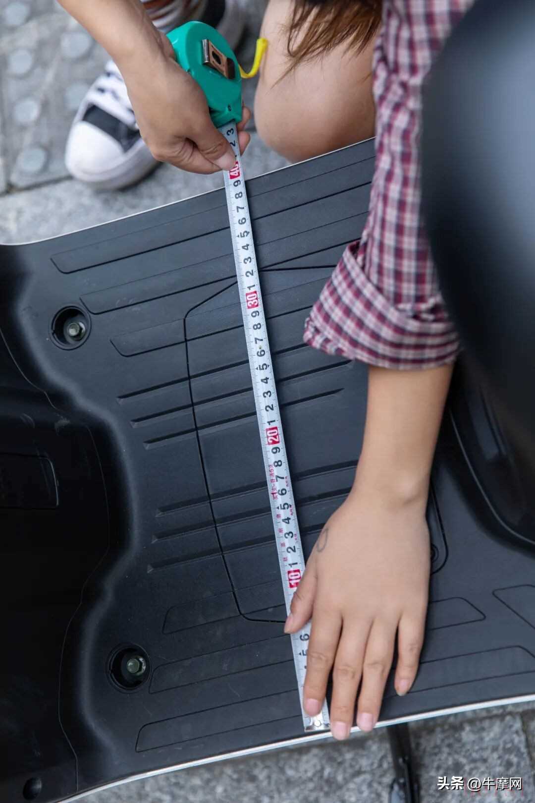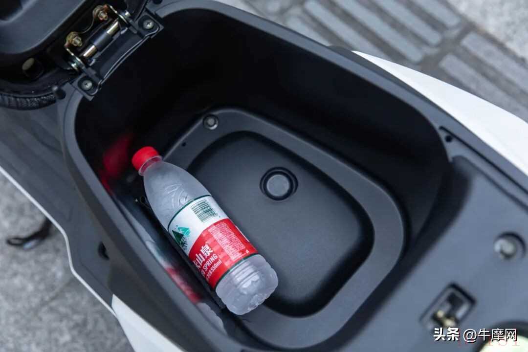 雖然這臺車的尺寸小巧,但實際空間并不會局促,平踏部分最窄也有24cm,橫向?qū)挾冉咏?0cm,腿部空間依然能自由伸展。車頭左側(cè)有一個小的手套箱,加上座桶部分的儲物能力,通勤放背包、代步取快遞放東西都很方便。