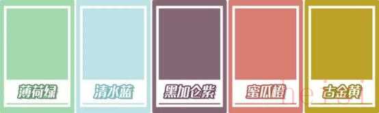 今年春夏流行色主打清新色調(diào):薄荷綠、清水藍(lán)、黑加侖紫、蜜瓜橙、古金黃,五種色系在各個(gè)領(lǐng)域內(nèi)迅速流行開(kāi)來(lái)。
