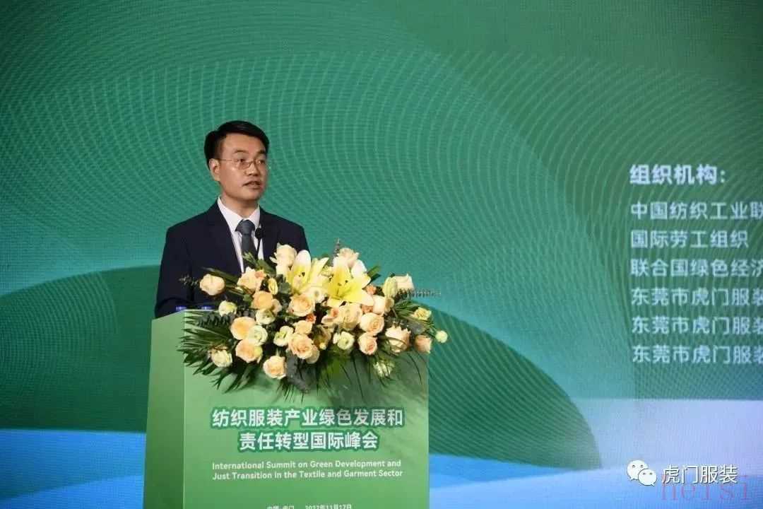 11月17日,由中國紡織工業(yè)聯(lián)合會(CNTAC)、國際勞工組織(ILO)及相關(guān)國際機(jī)構(gòu),與虎門鎮(zhèn)聯(lián)合舉辦的“2022紡織服裝綠色發(fā)展和責(zé)任轉(zhuǎn)型國際峰會”在虎門美思威爾頓酒店舉行,本次峰會采取線上線下相結(jié)合的方式,主會場設(shè)在虎門。國際紡聯(lián)主席、中國紡織工業(yè)聯(lián)合會會長孫瑞哲,工業(yè)和信息化部消費(fèi)品工業(yè)司一級巡視員曹學(xué)軍,國際勞工組織北京局局長李昌徽,虎門鎮(zhèn)黨委副書記、鎮(zhèn)長吳慶球等領(lǐng)導(dǎo)、嘉賓,先后到場或通過現(xiàn)場連線方式出席會議并致辭,相關(guān)國際機(jī)構(gòu)代表,知名專家學(xué)者、企業(yè)代表等參會,中國紡織工業(yè)聯(lián)合會社會責(zé)任辦公室主任閻巖主持。