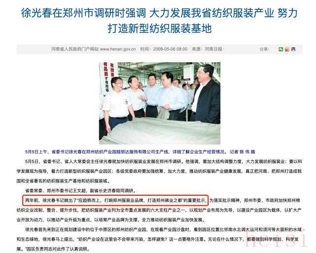 鄭州媒體做了一篇《鄭州女褲驚艷京城》的報道,引起時任省委書記徐光春的注意,后者做出了“應(yīng)趨勢而上,打響鄭州服裝業(yè)品牌,打造鄭州褲業(yè)之都”的批示,徹底讓鄭州女褲喜提熱搜。