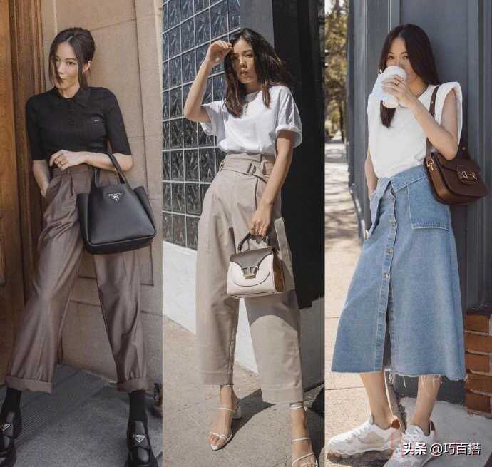 因?yàn)門(mén)恤衫本身沒(méi)有腰線,是寬松隨意的設(shè)計(jì),所以對(duì)于高腰線就有著迫切的需求,因此選擇高腰線下衣更加合適,顯高顯瘦。