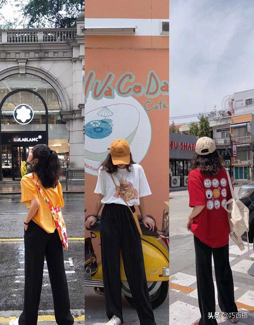 "基礎(chǔ)色T恤 + 亮色下裝:" 比如白色T恤 + 橙色/綠色/寶藍(lán)色休閑褲。用下裝增添活力。