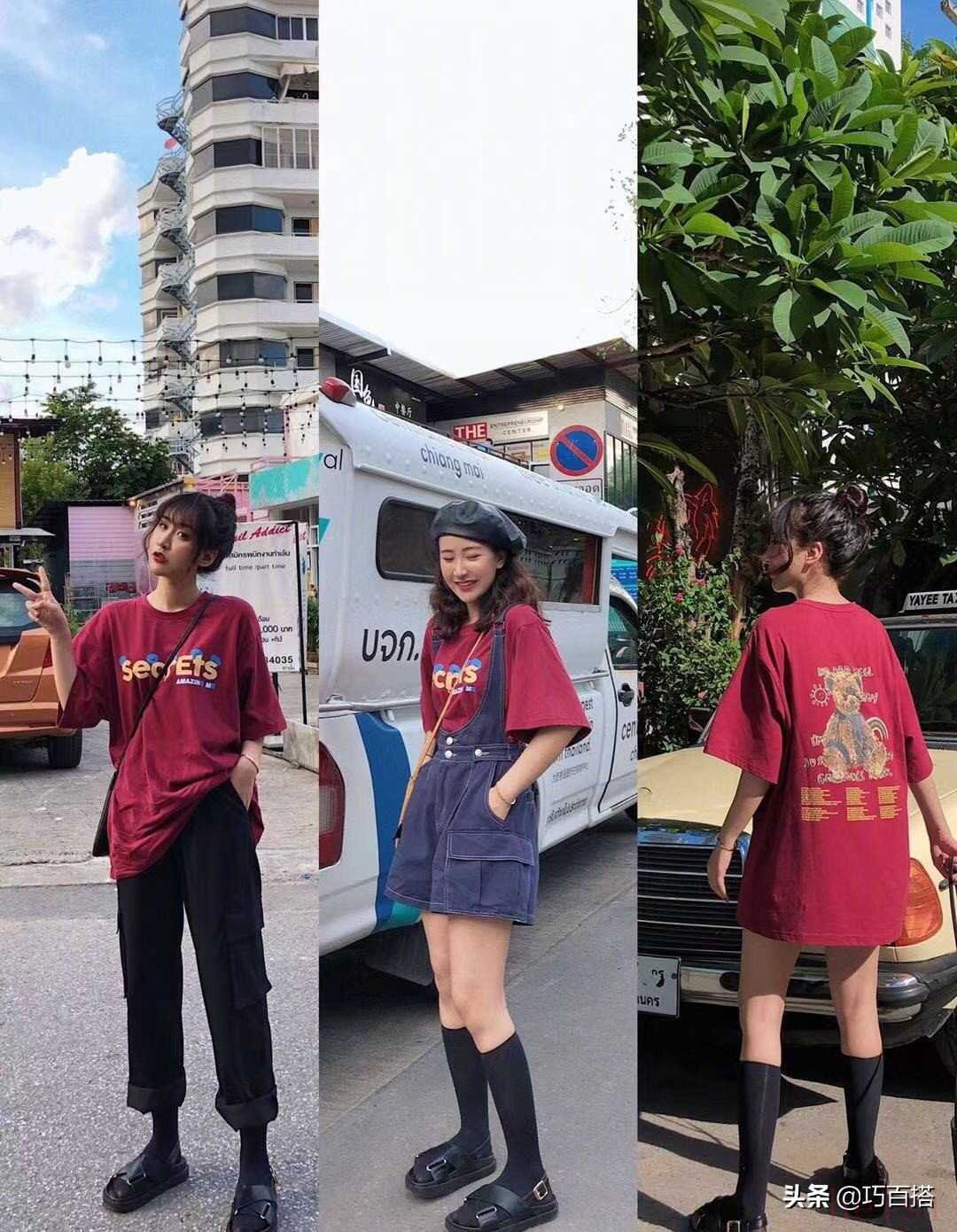 "撞色T恤(如果款式設(shè)計(jì)感強(qiáng)):" 選擇有設(shè)計(jì)感的撞色T恤,搭配基礎(chǔ)色下裝,平衡視覺(jué)。