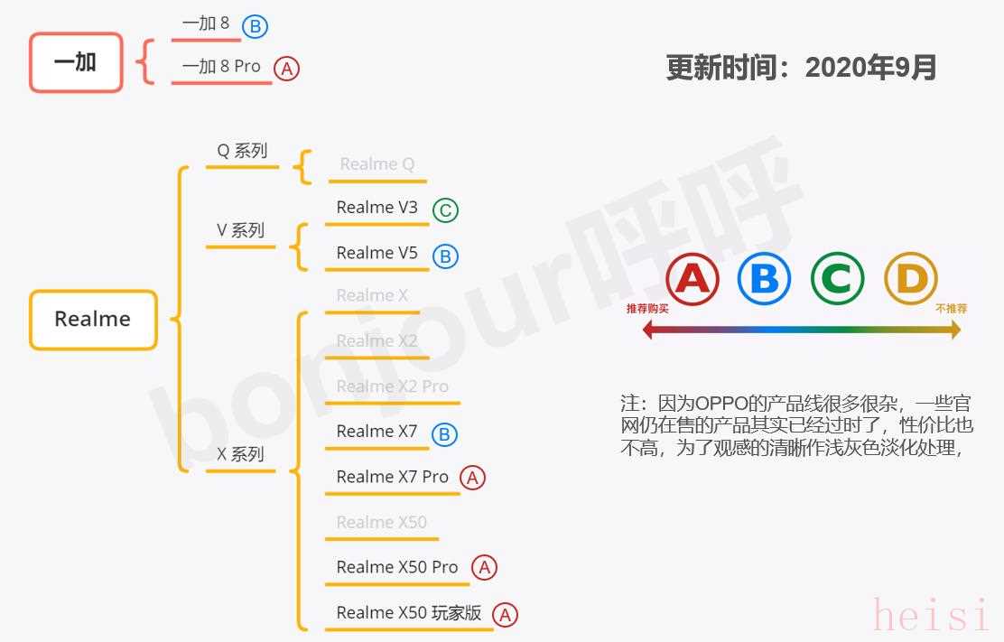 推薦表內(nèi)的推薦等級,主要是指同品牌內(nèi)的比較,如果將2000元的OPPO和Redmi作對比,那就很難確定等級了。而且OPPO雖說整體價格高一些,但是整體的做工質(zhì)量以及售后服務還是處于業(yè)內(nèi)前列的,只看數(shù)據(jù)參數(shù)的對比也很難保證客觀。我會盡量結(jié)合實際,給出比較中肯的推薦建議。
