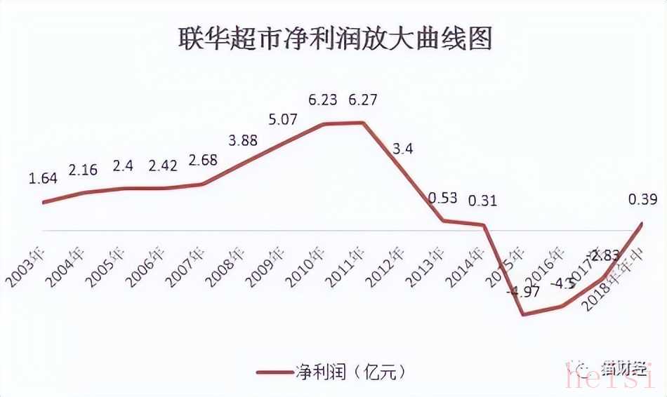 在凈利潤(rùn)的表現(xiàn)上,2011年是聯(lián)華凈利潤(rùn)的增長(zhǎng)巔峰,為6.27億元。往后便開始開倒車,基本上一年不如一年,2015年到2017年連續(xù)三年出現(xiàn)嚴(yán)重虧損。