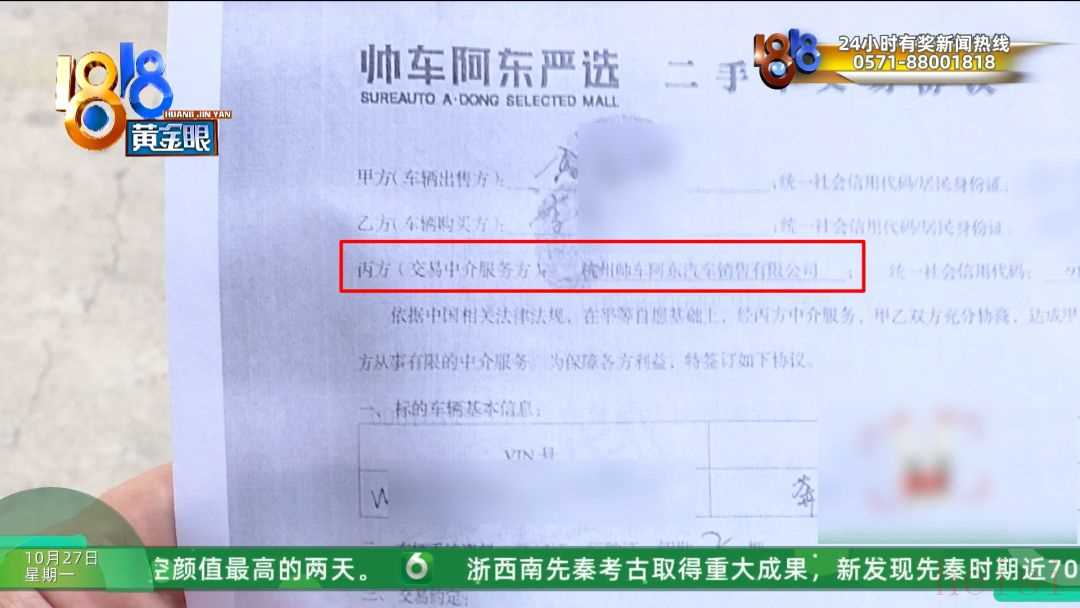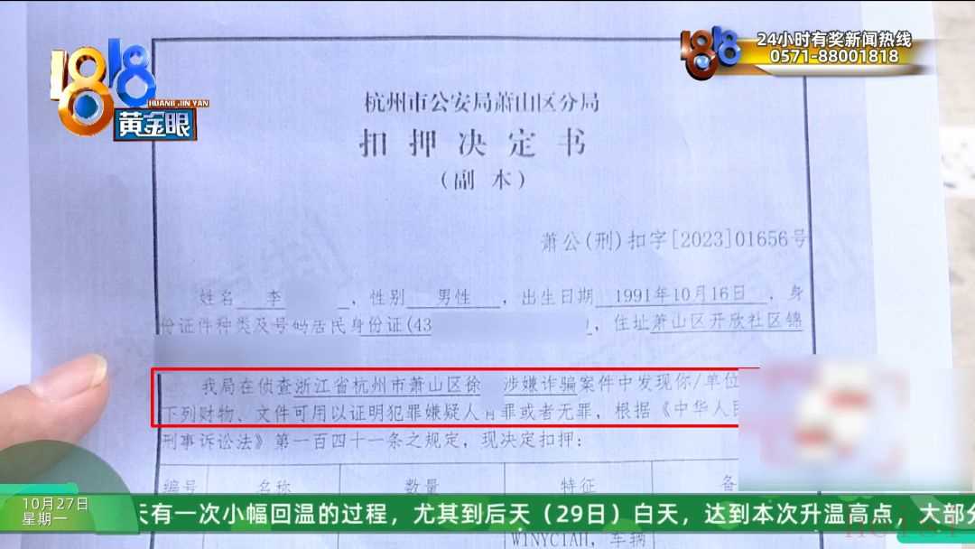 李先生:當(dāng)天看好就當(dāng)天訂下來了,付了70多萬,貸款貸了99萬。這個(gè)車子開了一年半,就因?yàn)榍败囍饕荒暌院笊婕暗杰囕v詐騙案,我這個(gè)車子也涉及在里面。因?yàn)槭切炷潮救诉^戶給我的,不是通過車商過戶給我的,所以說我有直接關(guān)聯(lián)。蕭山公安說這個(gè)車子作為涉案車輛,要扣押的。