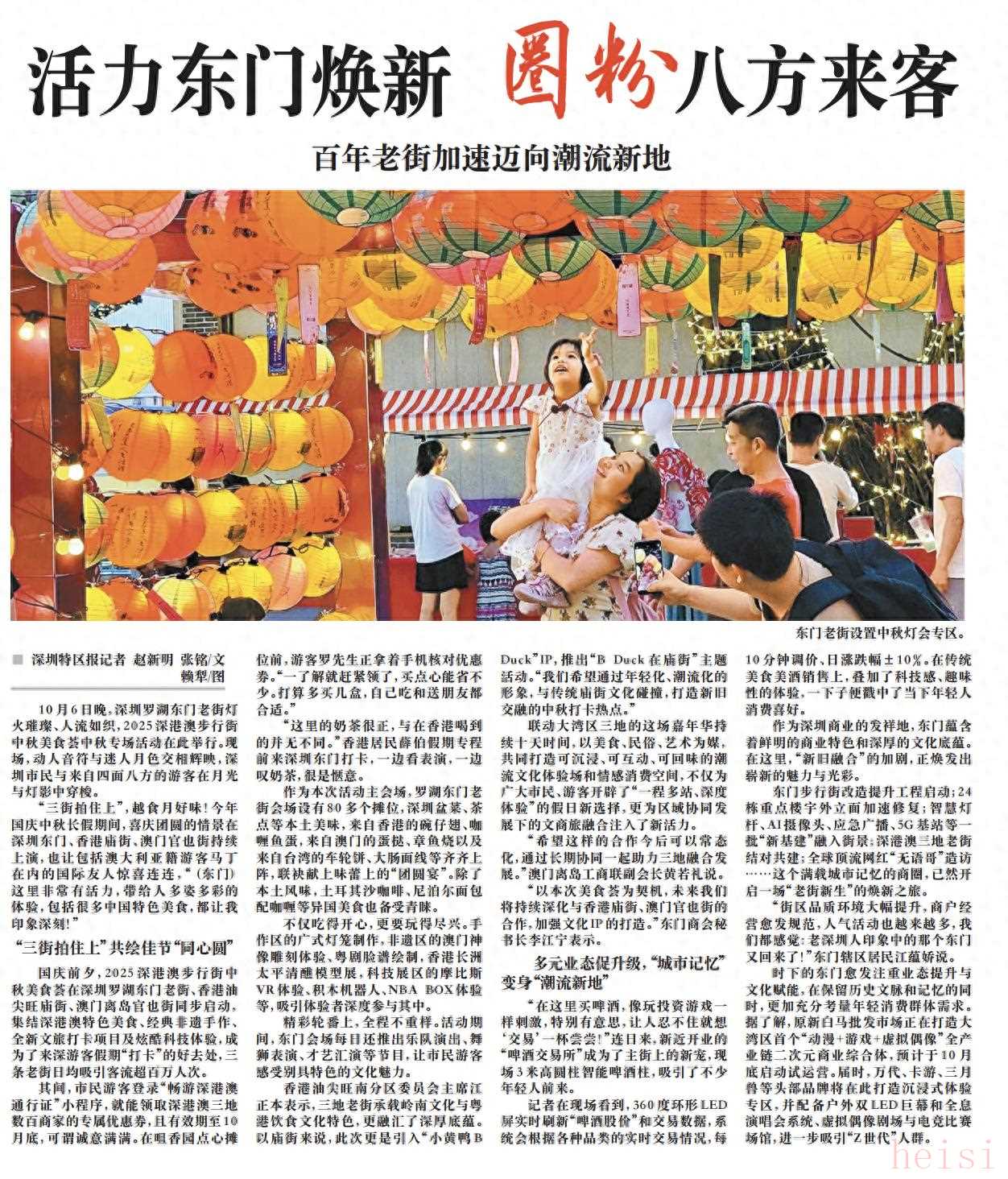 這篇標(biāo)題【深圳特區(qū)報】活力東門煥新 圈粉八方來客 百年老街加速邁向潮流新地,描繪了深圳東門老街正在發(fā)生的積極變化。以下是對這個標(biāo)題的解讀和分析: