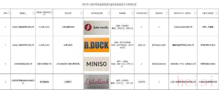 "總結(jié):" 上海市市場(chǎng)監(jiān)管局近期對(duì)童鞋及飾品進(jìn)行了抽查,結(jié)果顯示名創(chuàng)優(yōu)品和melissa等品牌的部分產(chǎn)品存在不合格情況。