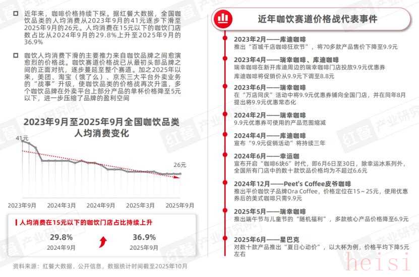 3.咖飲品牌價格戰(zhàn)及外賣平臺競爭,促使咖飲賽道人均消費持續(xù)下探