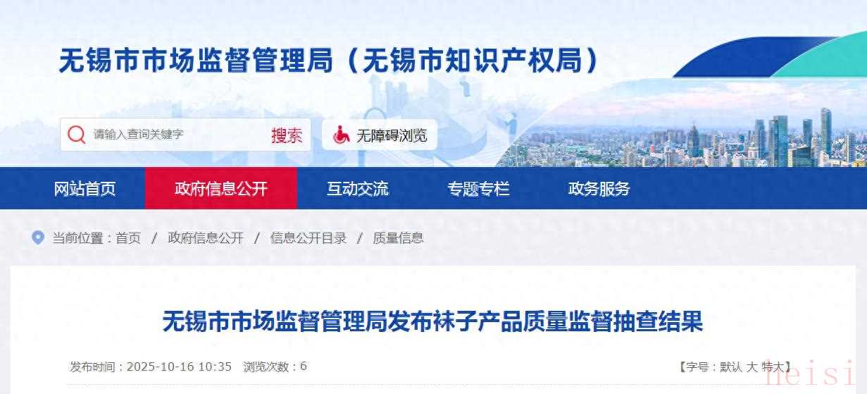 根據(jù)您提供的信息,江蘇省無錫市市場監(jiān)督管理局發(fā)布了關(guān)于襪子產(chǎn)品質(zhì)量的監(jiān)督抽查結(jié)果。