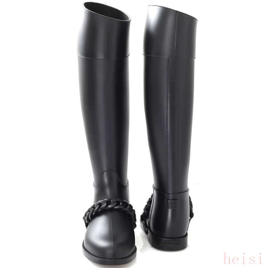 這是最近還能買(mǎi)得到的新款純黑鏈條雨靴,2015 年 Givenchy 的銀色鏈條皮靴、夏天的 PVC 材質(zhì)鏈條涼鞋都是大熱款,這雙雨靴也不例外地用了粗鏈元素,穿一次之后基本就是脫不下來(lái)了(不是真的脫不下來(lái))……也是非常修腿型的一款,一定會(huì)讓你愛(ài)不釋手!