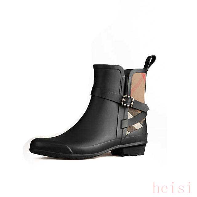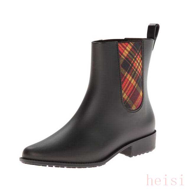 格紋短款雨靴,可調(diào)節(jié)踝關(guān)節(jié)的靴筒大小。格紋面積小了,氣質(zhì)水平上去了。