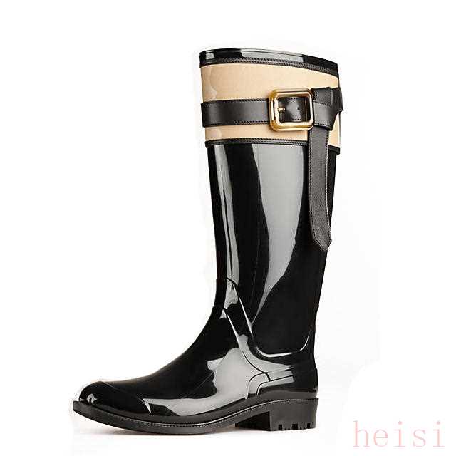 拼接材質(zhì)、金色鎖扣、環(huán)繞皮帶,這已經(jīng)不是單純用來(lái)趟水的雨靴了,這就是主角級(jí)別的高筒靴?。。?/p>
