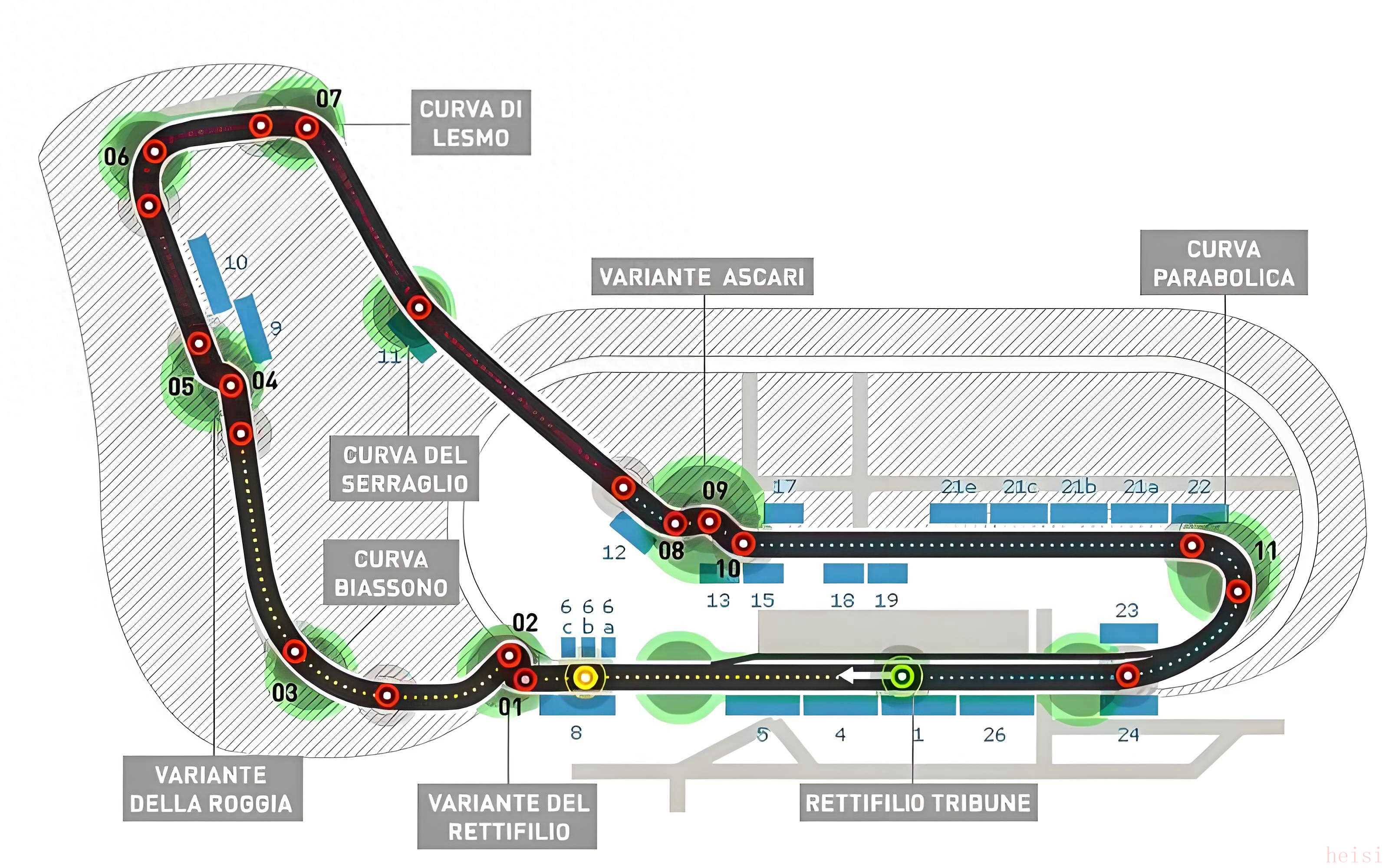 位于意大利米蘭北部的蒙扎賽道,自 1922 年啟用以來,便以極致的速度追求成為 F1 賽歷中最具激情的賽道之一,被譽(yù)為 “速度神廟”。這條全長 5.793 公里的賽道,擁有兩條長達(dá) 1 公里以上的直道,賽車在此可輕松突破 350 公里 / 小時的極速,對發(fā)動機(jī)動力和車身空氣動力學(xué)設(shè)計提出了嚴(yán)苛考驗。?