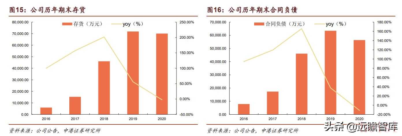 公司近五年存貨規(guī)模增長(zhǎng)迅速,2020 年期末存貨為 70,069.85 萬(wàn)元,占總資產(chǎn)的比例為 26.12%,2021 年半年度存貨為 82,187.7 萬(wàn)元,同比 +20.95%,在手訂單充足。