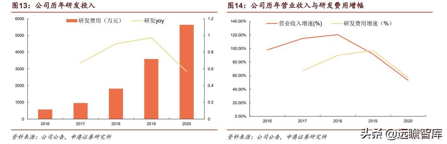 2019 年、2020 年公司研發(fā)費(fèi)用分別為 3,589.21 萬(wàn)元、5,635.15 萬(wàn)元,同比增長(zhǎng)率分別為 97.18%和 57.00%,超過(guò)當(dāng)年?duì)I業(yè)收入增幅,研發(fā)費(fèi)用率分別為 5.13%、5.26%。