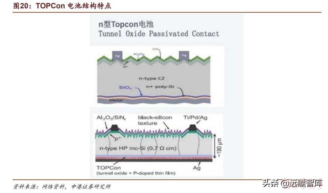 TOPCon 電池(Tunnel Oxide Passivated Contact,隧穿氧化層鈍化接觸電池)是由 N-PERT 電池(鈍化發(fā)射極背表面全擴(kuò)散電池)衍生而來(lái),其前表面與 N-PERT 電池?zé)o本質(zhì)區(qū)別。