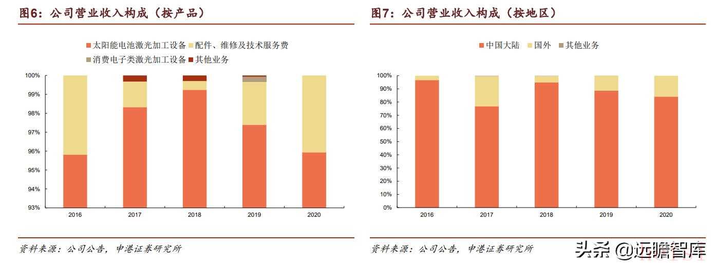 2016 至 2020 年,以 PERC 激光消融設(shè)備與 SE 激光摻雜設(shè)備為主的太陽(yáng)能電池激光加工設(shè)備收入均在 95%以上,占公司營(yíng)收的絕大部分。
