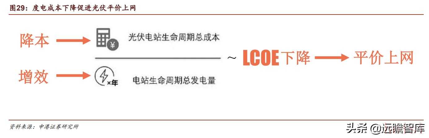 降本增效促進(jìn) LCOE 下降。度電成本(LCOE)是度量發(fā)電經(jīng)濟(jì)性的核心指標(biāo)之一。