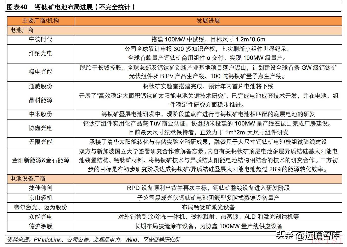 當(dāng)前鈣鈦礦電池仍處于發(fā)展前期,需突破結(jié)晶工藝和批量供應(yīng)等問題,已有納纖光電、極電 光能、寧德時代、協(xié)鑫光電等電池廠商進行了研發(fā)布局,大規(guī)模產(chǎn)業(yè)化應(yīng)用有望進一步成熟。帝爾積極布局鈣鈦礦領(lǐng)域激光技術(shù)研發(fā),實現(xiàn)了鈣鈦礦電池量產(chǎn)訂單的交付。