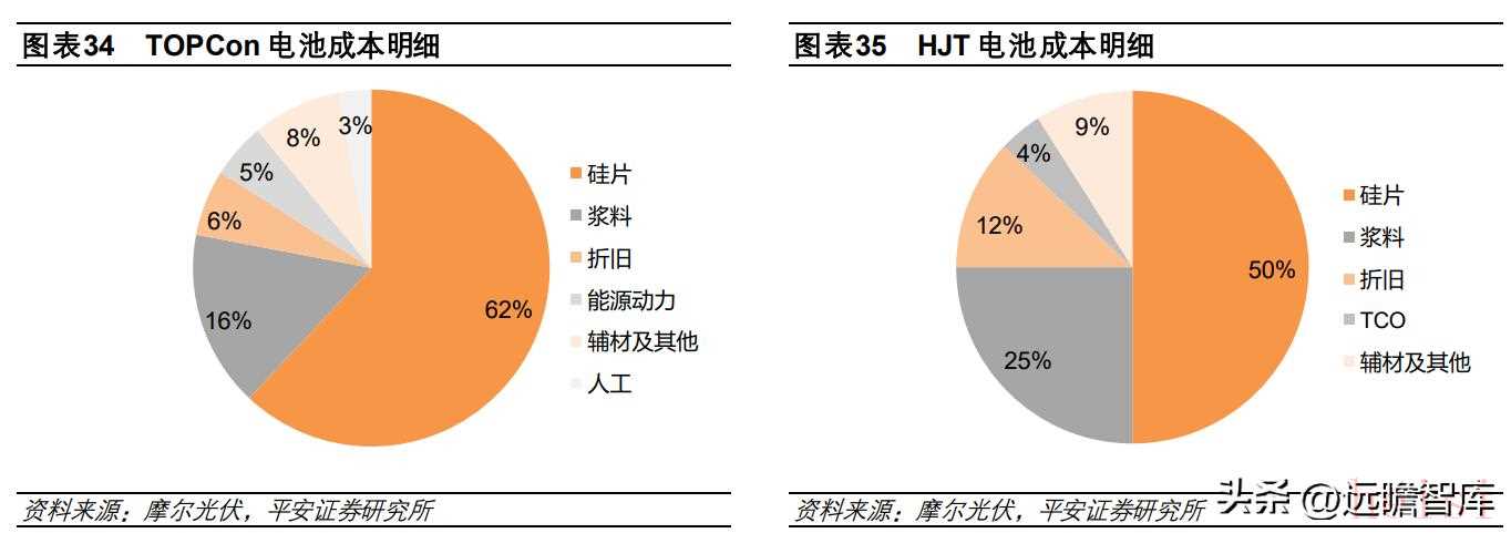 截至 2021 年,金屬化成本仍約占PERC 非硅成本 35%左右;而在雙面用銀的 TOPCon 電池中,銀漿成本約占非硅成本的 40%;在雙面低溫銀漿的 HJT電池中,銀漿成本約占非硅成本的 50%。銀漿成本是制約 N 型電池產(chǎn)業(yè)化提速的重要因素,行業(yè)迫切需要創(chuàng)新金屬化流程實現(xiàn)提效降本,其中激光轉(zhuǎn)印、銅電鍍等工藝有望得到快速發(fā)展。