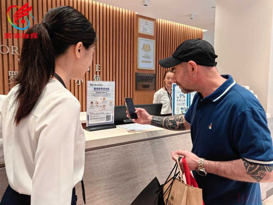 5月30日,在佛山市南海區(qū)佛羅倫薩小鎮(zhèn)廣佛名品奧特萊斯退稅試點(diǎn)專(zhuān)柜前,來(lái)自西班牙的游客Agustin手持新購(gòu)的服裝,在工作人員引導(dǎo)下掃碼、提交材料,短短幾分鐘便完成了退稅申請(qǐng)?!耙郧耙鹊诫x境時(shí)在機(jī)場(chǎng)排隊(duì)辦理,現(xiàn)在購(gòu)物后當(dāng)場(chǎng)就能退稅,省時(shí)又省心!”他興奮地展示手機(jī)中的到賬提醒。