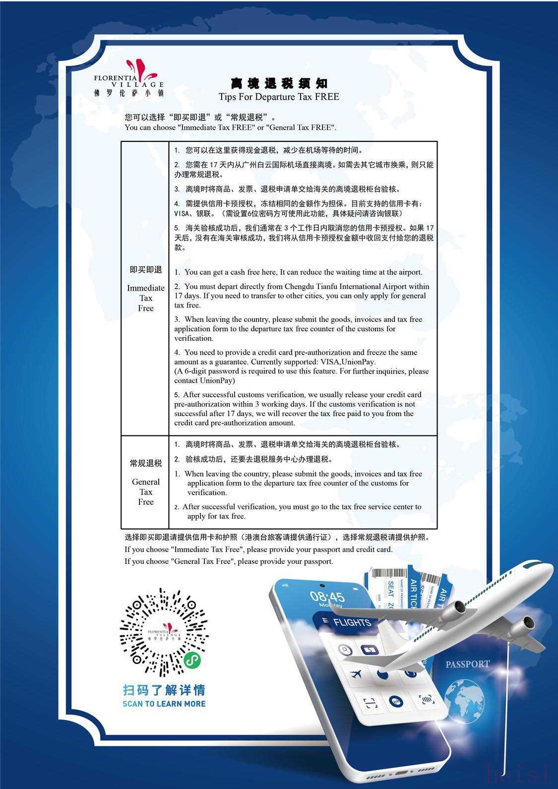 佛羅倫薩小鎮(zhèn)廣佛名品奧特萊斯的退稅宣傳。