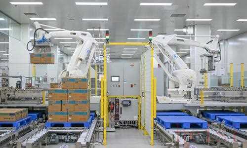10月29日,位于江北區(qū)的登康口腔智能工廠,機(jī)械臂在碼垛區(qū)有序運(yùn)轉(zhuǎn)。記者 張錦輝 攝/視覺重慶