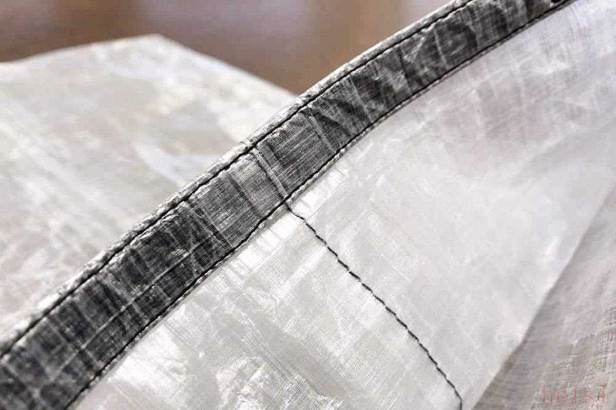 前面提到DCF是由三層布料壓制而成的,分別為前后兩層超高分子量聚乙烯纖維(UHMWPE)與中間的Dyneema纖維。雖然這帶給DCF面料有很不錯的耐用性,但這樣壓制而成的布料會缺乏彈性,如果表面有孔洞或是破損,洞口會越扯越大,隨著使用次數(shù)增加,前后的薄膜的摺痕也會變多,最后也會因此而破損。這樣的問題不同品牌正試著找更好的方法去解決,像是在縫制時結(jié)合膠水膠條(但可能又會增加其重量)。